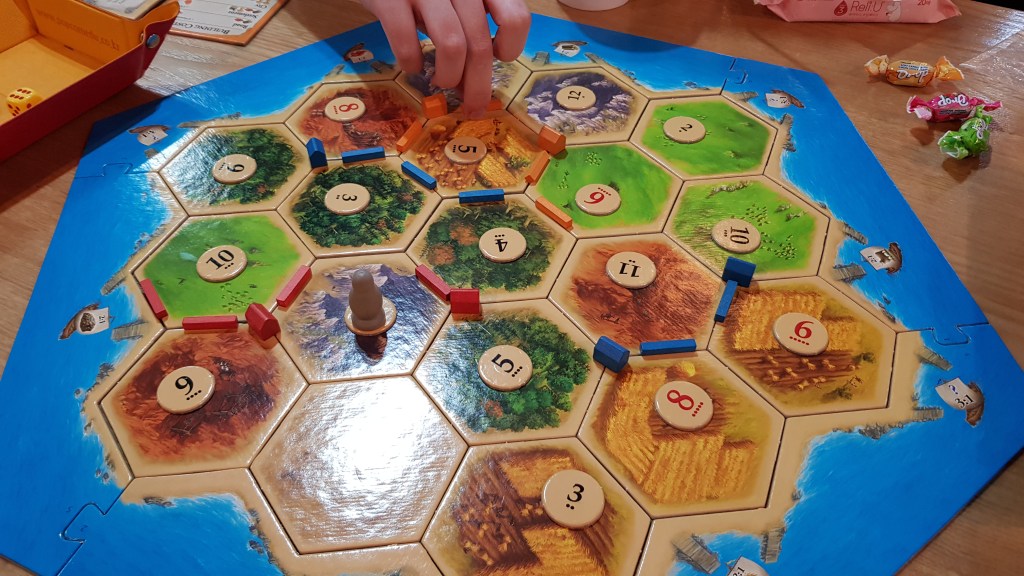After two games of Pandemic we decided it was time for something competitive so brought out the classic favourite, Cattan. We only played the basic game but they did have all the expansions available. When we were ready to switch games the staff came over and packed up Pandemic and set out Cattan for us. They provided handy card holders for the resources and baskets for die rolls which was handy to keep us organised. I get a bit competitive with Cattan and was pretty upset when my longest road got cut off *shakes fist* but was happy to concede the win to my friend (for today at least…) Luckily we all had a good time with no hard feelings, and finished off the day with bagels at Truly Baker (check out the post here!)
