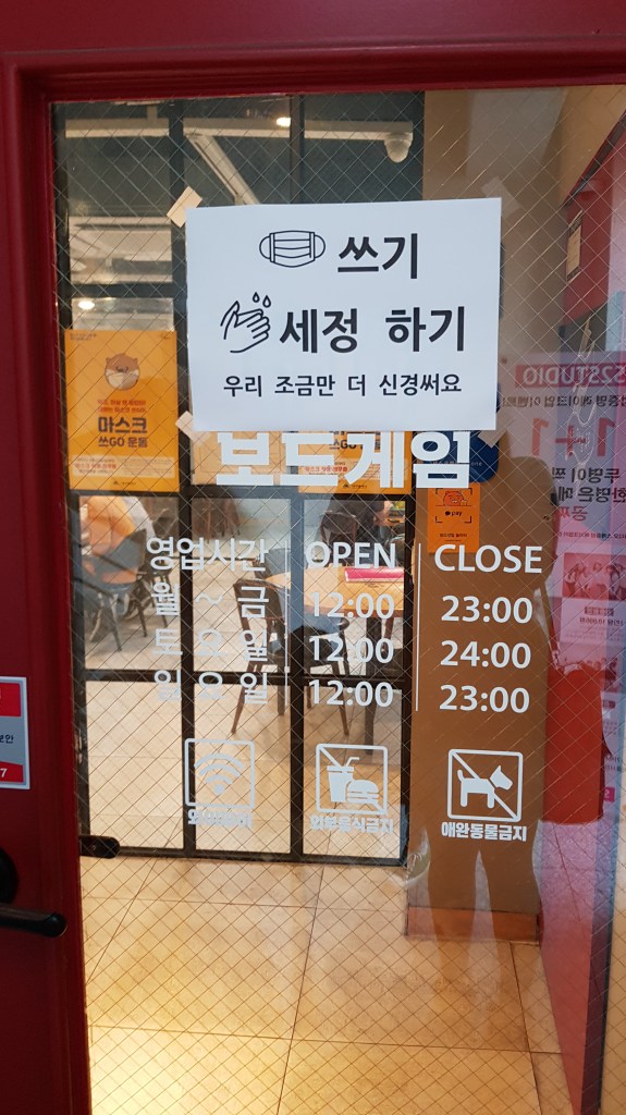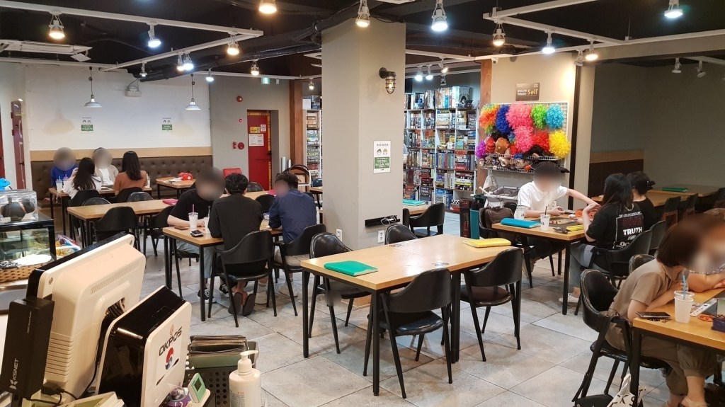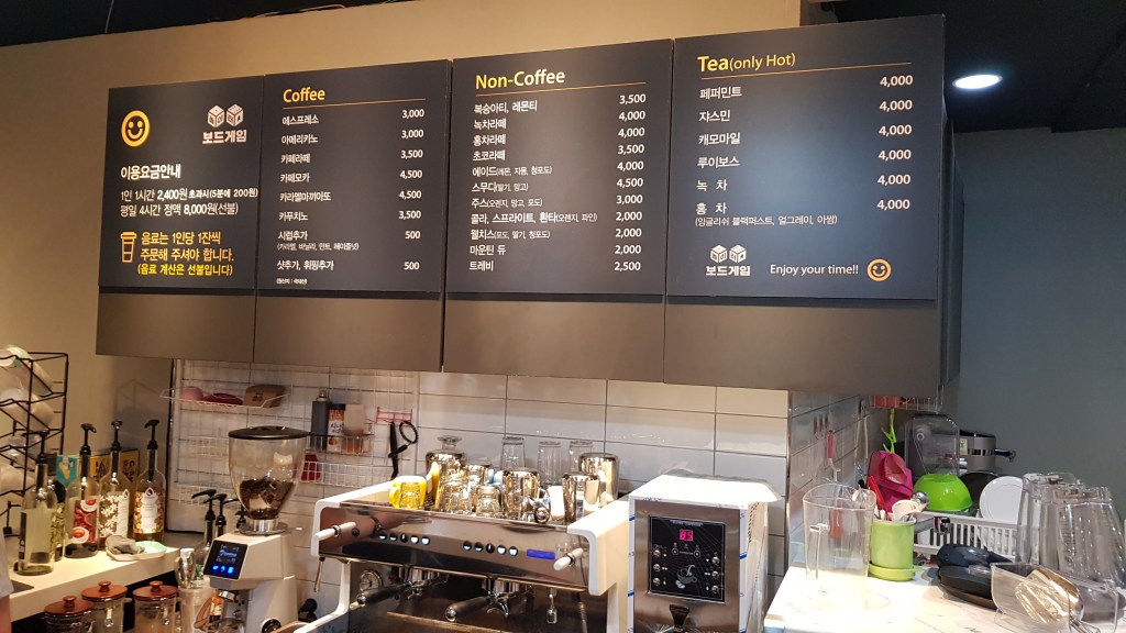 We checked out this place in downtown just next to Memorial Park and only a block away from Sparkland. The entrance is a bit hard to spot and we did walk past it, but you can see the sign ‘보드게임’ on the building from the street. The cafe was on the third floor so head on up for an afternoon of fun!