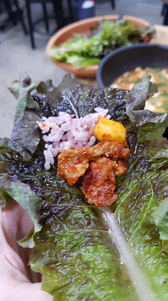 It was so so delicious and so so satisfying. We got mid spicy level but they said they can adjust spice for preference. The portions were a decent size too so we felt it was good value for money, especially for the pork. Wrapping up a little meat with rice and garlic is just perfection! The soup was really tasty but if you aren’t a fan of soybean soups then you might want to skip it. The taste was very strong but we loved it. I would definitely go back again to try the beef one when I’m feeling a little more flush. Hoping next time to wash it down with some soju too 😉