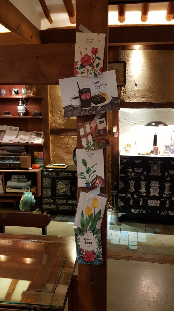 So after our dinner date to Kyung-Hee Galbijjim we fancied some dessert and a coffee. Just round the corner from the restaurant we stumbled across this cute hanok style cafe called Romance Papa. Inside the decor was 60s Korean themed with loads of cute seating areas, fun decor, and spots for pics.