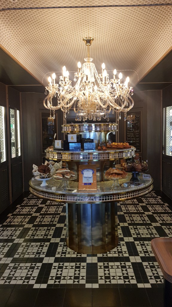 There’s both indoor and outdoor seating, but what really stands out on entering is this super fancy chandelier. Indicator that you’ve walked into a high end baked goods store 😂 and tbf it definitely isn’t the cheapest bakery I’ve been to. However, everything looked DELICIOUS and I wish I’d gone with friends to try a selection of the baked goods. Always next time, today I was on a cheesecake mission.