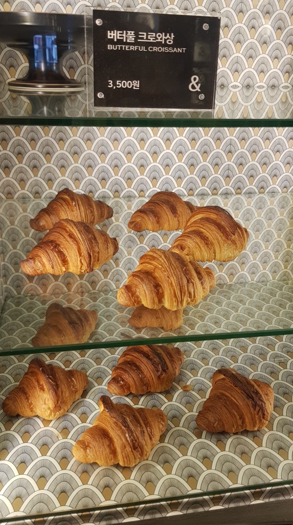 Also, I should have taken more photos but I went just as they opened and it was just me and the one member of staff and deathly silent inside, so after a few obnoxious camera clicks I felt awkward and stopped snapping. Sorry, I’m such a chicken and that Korean camera click sound is LOUD. But you can see from these snaps they have a huge range of tasty looking baked goods. Everything looked AMAZING! Drinks were a bit on the pricey side with Americanos starting at 5,000 but seems like you’re playing for the high class experience haha 😂