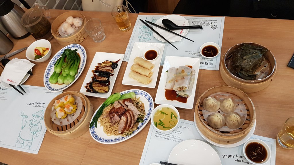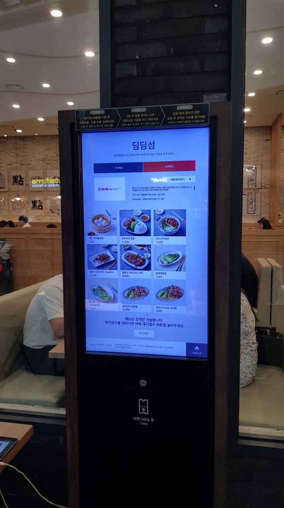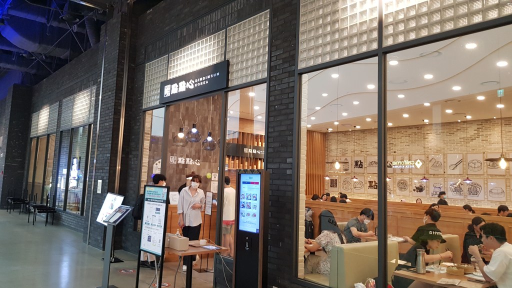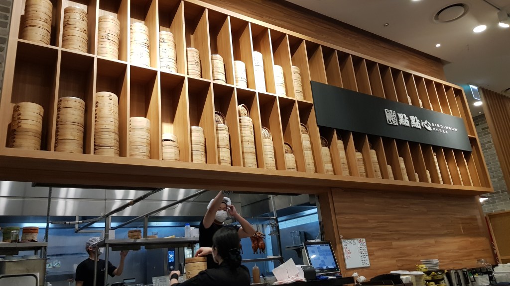 So with vacation ending soon some friends and I decided to make the most of it today and go to Shinsegae Department Store for a lunch time dim sum feast! I’d heard good things about Dim Dim Sum so was pretty excited to try their menu. Even though the restaurant is pretty big and we arrived around 1.30 on a Friday afternoon there was still a huge queue outside! We had to get a ticket and wait. Apparently this is pretty common so expect a wait time if you come here, the screen outside will give you a ticket and displays the current number.