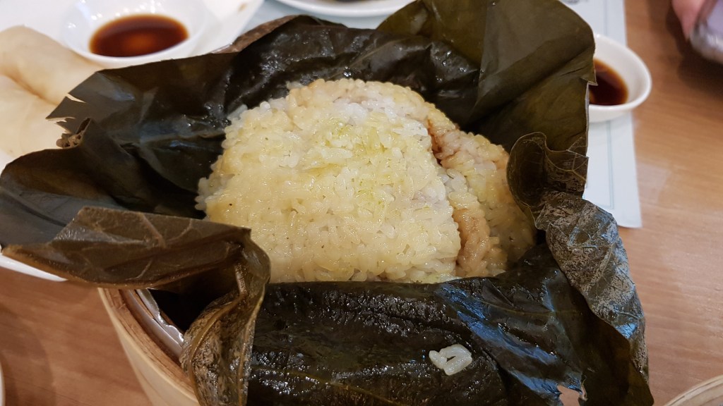 Bottom rows: First the pork and shrimp dumplings. Super yummy! This was one my friend wanted to have and she was pretty satisfied with them so we’ll give them an A+ Next is the duck and noodles. This was probably my number one, I absolutely love duck and don’t get to eat it much, plus the sauce with the noodles was AMAZING. The only sad part was I wanted more duck! The last one is the sticky rice which came in a lotus leaf. When you break open the rice there’s pork and sauce inside. Again, not the biggest fan of sticky rice but when mixed with the filling it was super tasty! But, very filling so be careful with this one!
