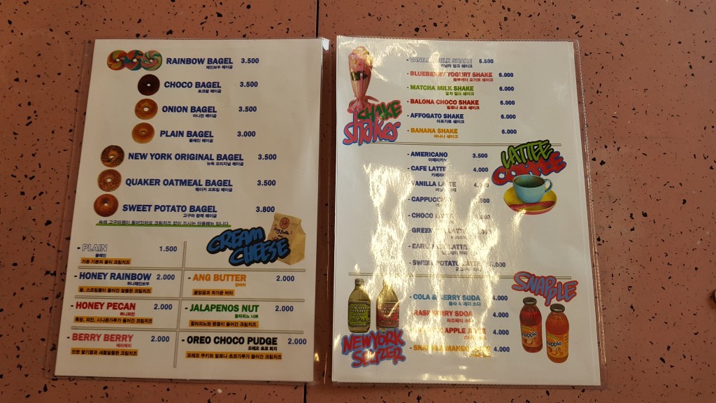 The menu includes a range of bagels like original, onion, choco, and rainbow. You can also select from a variety of cream cheese based fillings, with exciting flavours like honey rainbow, nut jalapeno, and orea choco fudge. They also offer a Signature Sandwich (6,500) or the Truly Brunch (8,500/10,000 with Americano) if you’re feeling hungry. I’ve also heard great things about their range of shakes, but when I visited wasn’t hungry enough to justify a shake AND bagel 😦 Gonna have to visit again and update on the shakes I guess hehe 😉