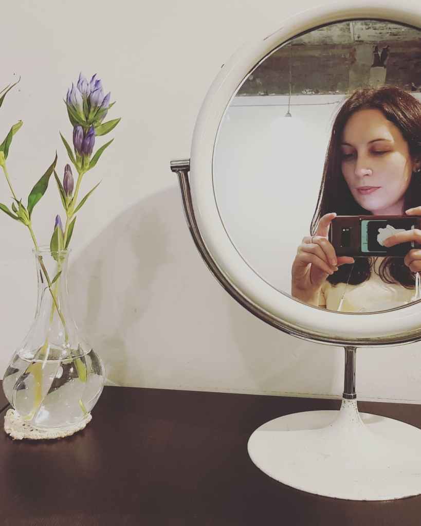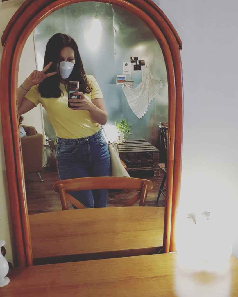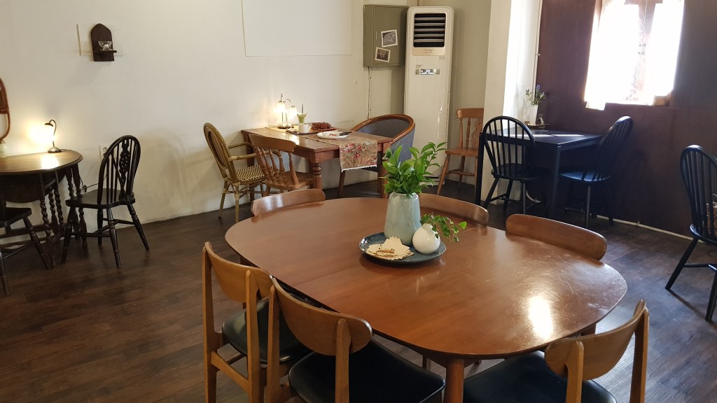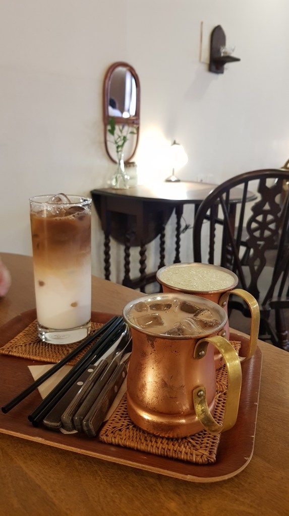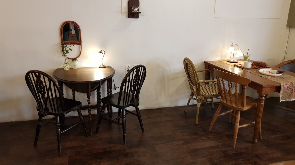 There were two main rooms inside the cafe, much bigger than it looked from the outside! There is an assortment of mismatched wooden furniture and it has a cottagey feel to the cafe. Scattered around the rooms are mirrors where you can stop for some great Insta shots (see mine below!) or you can just admire the decor. There’s also a long mirror in one corner set up with a chair for REAL posey pics. It’s basically an Insta paradise~