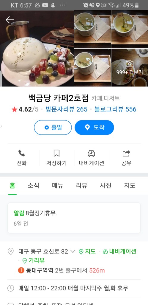 This cafe has several locations across Daegu, search the cafe name in Naver to find your local or check out the Dong-gu location below