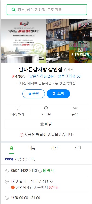 Namzatang has many locations across Daegu, search 남다른감자탕 to find your local branch or check below to find the Sangin-dong location.