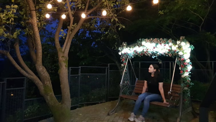 We found a bench to sit and have our picnic while the sun set. There was also a cute little swing bench lit up by fairy lights, perfect for some photos! After the sun had gone down we headed back up to the platform to enjoy the night view. I think this is even more beautiful, and so calming watching the lights twinkle below. Daegu is a beautiful city and this is great way to see it. Sadly we got there quite late and only had a short time to enjoy the view before the last cable car departed.