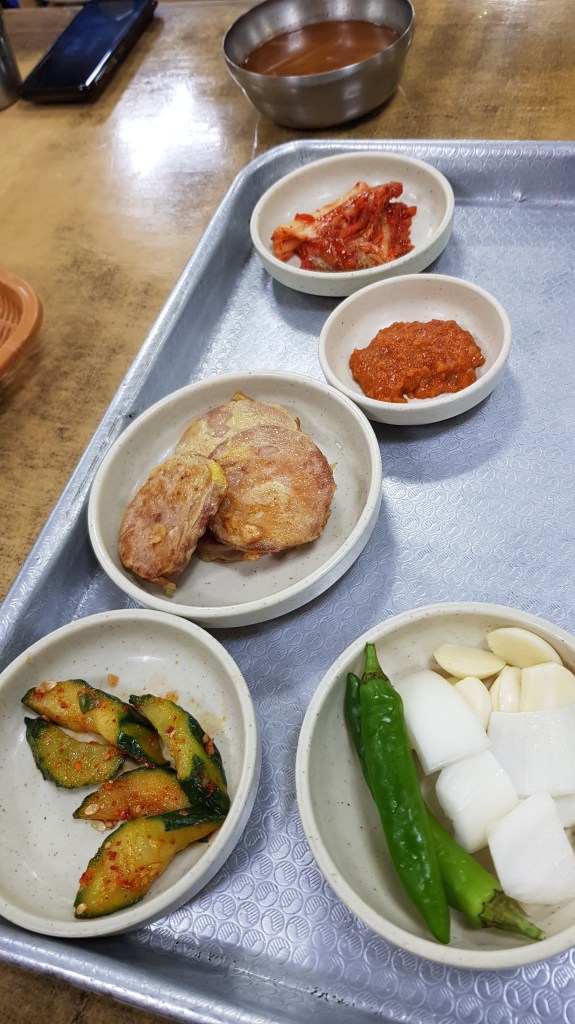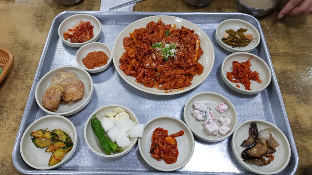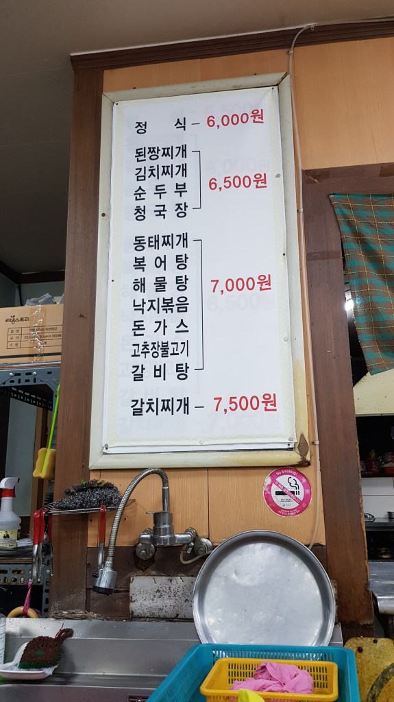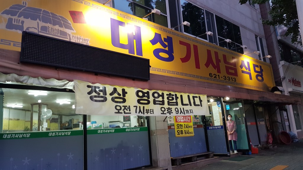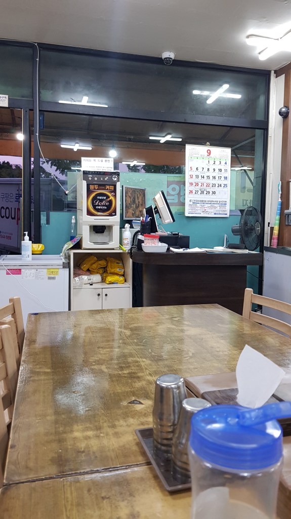 So to start today’s blog post a little bit of a Korean lesson haha. ‘기사님’ means driver, and is a polite way you can call your taxi driver in Korea. So a ‘기사님식당’ is a ‘driver’s restaurant’. You can find these kinds of restaurants all over Daegu, and Korea! The concept is that they serve cheap and tasty food, but it arrives on your table in a matter of minutes. The idea being that taxi drivers want to eat quickly and get back out on the road making money, so need to be in and out as fast as possible. They’re great spots to grab some cheap and fast food so keep your eyes out for one near you, or try my favourite one featured below!