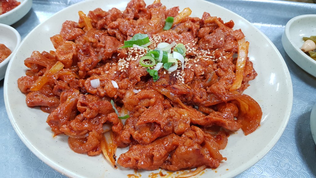 A few short minutes later they brought out a big plate of bulgogi. This type is made with gochujang paste, to me it’s not so spicy but might be for some people (???). But it tastes sooooo nice with the fresh white rice. Plus the wait time is so short, if you’re in a rush it’s a great spot for a quick bite! While you’re in Korea I recommend you try a 기사님식당 at least once for some fast and cheap eats. At 14,000 for two people the price is not bad at all. Have you been to a driver’s restaurant in Korea? Let me know in the comments here, on Facebook, or on Instagram!
