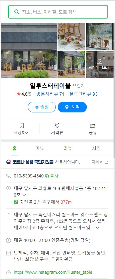 Address: 대구 달서구 와룡로 169 판매시설동 1층 102-110호