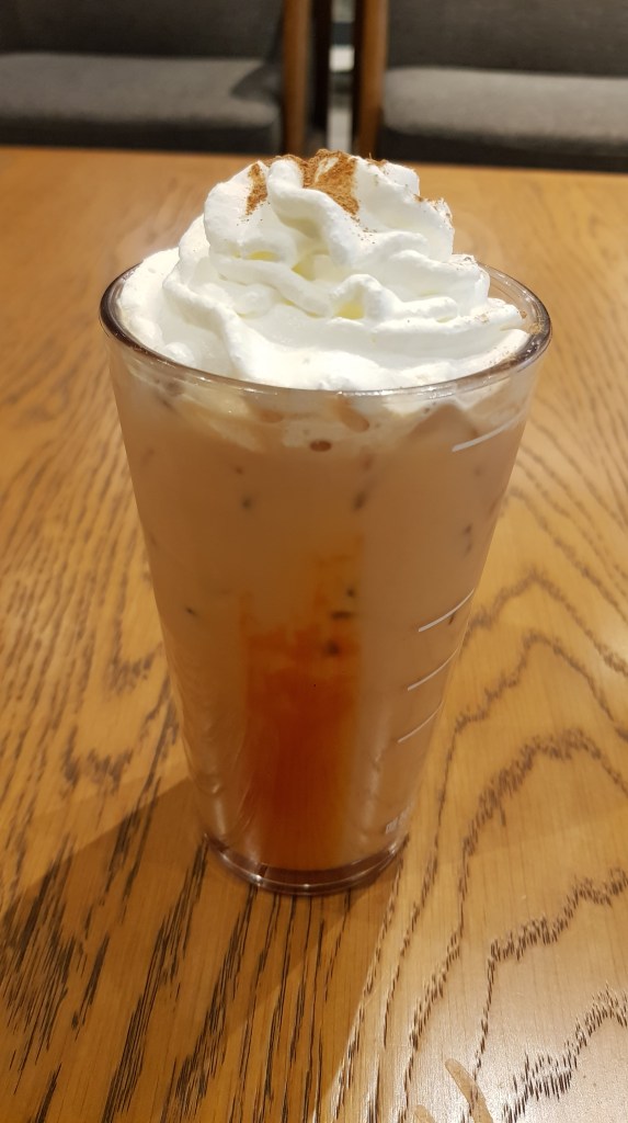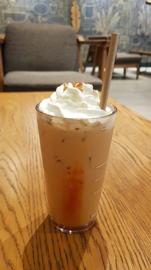 So I got the iced PSL and a friend opted for the hot version. I usually just stick with black coffee like Ameircano so a latte was a rare treat for me. I’ve heard that they aren’t as sweet as when they were released a few years back. Personally I’m not overly fond of very sweet drinks and I thought this was fine. It tasted like a latte with flavouring. Goal achieved. I’m not swayed enough that I went right out to buy Uggs and a Live Laugh Love sign, but it was alright!