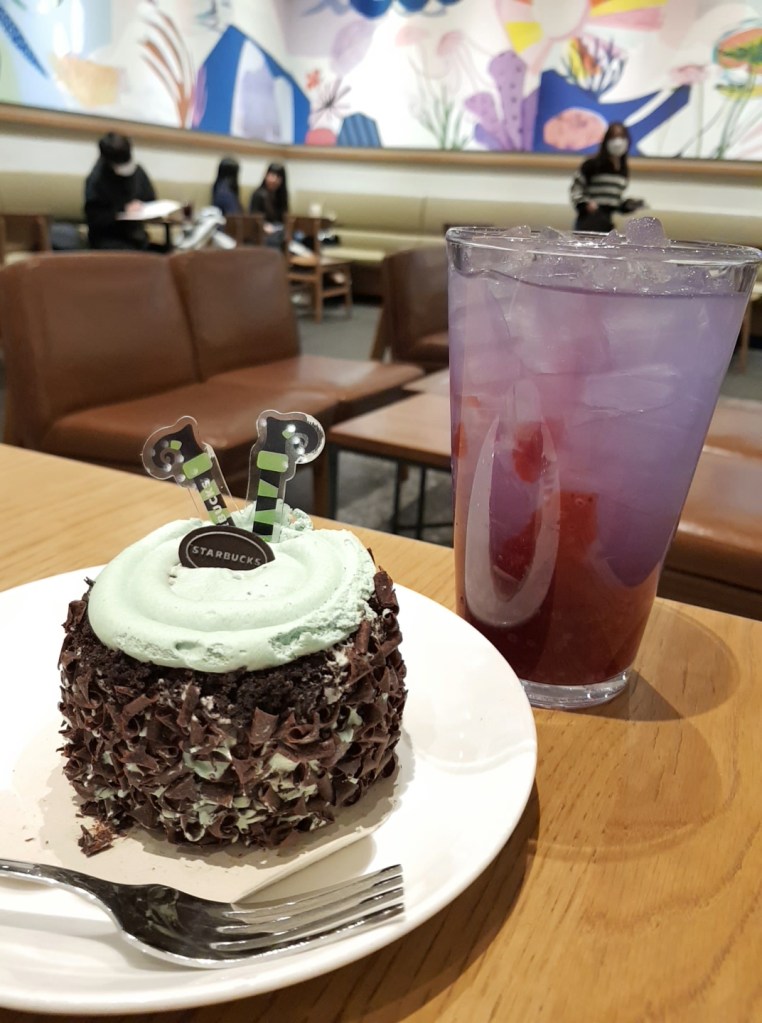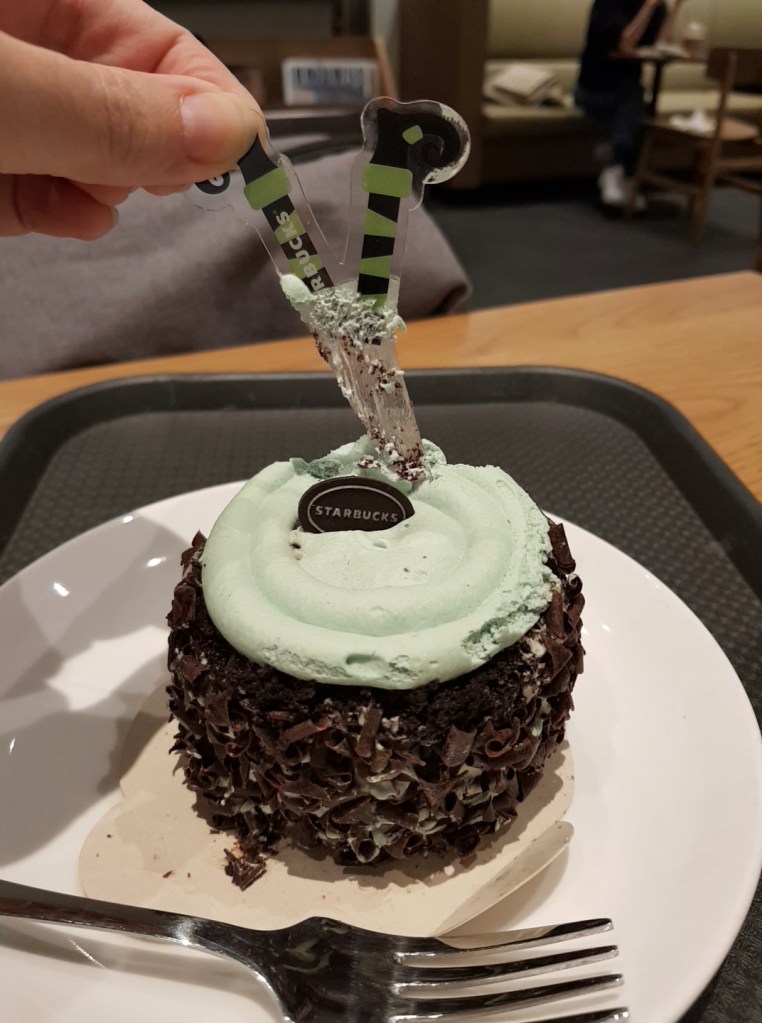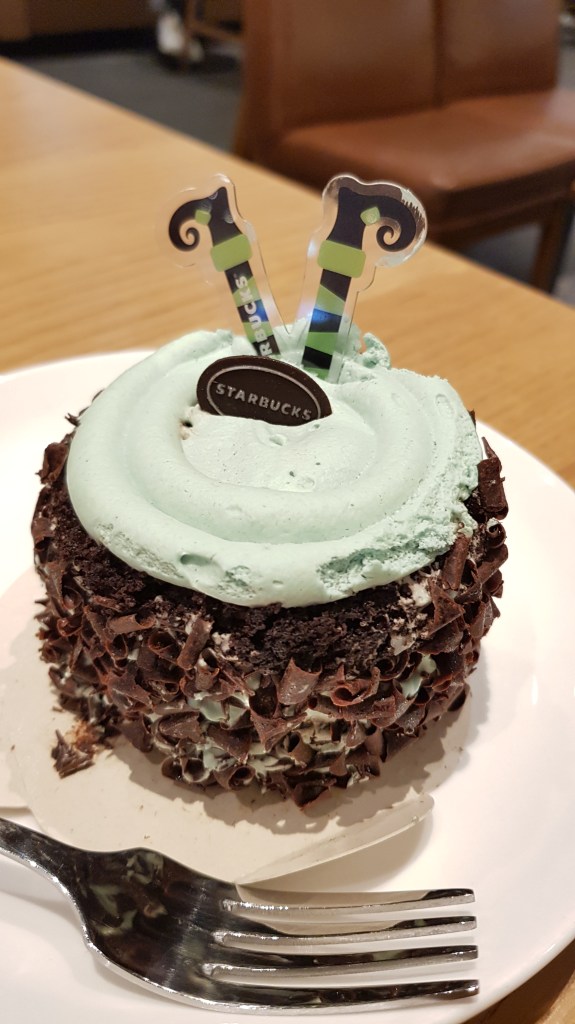 Which side are you on in the mint choco debate? I’ve been eating mint choco for years (After Eights are a firm favoruite with my family back in the UK) so I love the current craze in Korea because I get to try so many mint choco inspired treats. This cake was pretty yummy, too! It was quite rich and a pretty big portion. I actually ruined my dinner eating it haha. But I enjoyed it, good mint choco combo. Sad the rest of the witch wasn’t attached to the legs though.