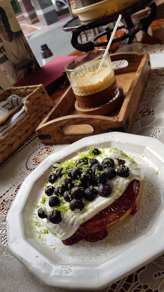 The menu offers a selection of breakfast toasts and sandwiches, pastas, salads, yoghurt, and pancakes. Sadly I forgot to get a picture of the menu (I always do, gah!) but they also offered the menu in English so no worries if you can’t read Korean. We ordered the smoked salmon toast (12,500) with an extra poached egg (2,000) as well as the blueberry pancakes (9,000) and a Freddo Espresso (4,000). I was warned this was very strong and boy they did not lie! It was very strong but delicious, perfect for coffee lovers like myself.