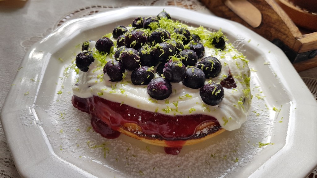 The pancakes took 15 minutes so we ate it as a dessert. Again they were very delicious, light and fluffy and not too sweet. The blueberries were a little cold but still good and we polished off the whole plate in minutes. Again I could have easily eaten a double portion!