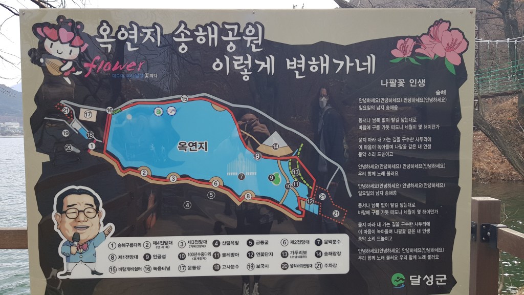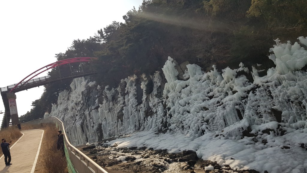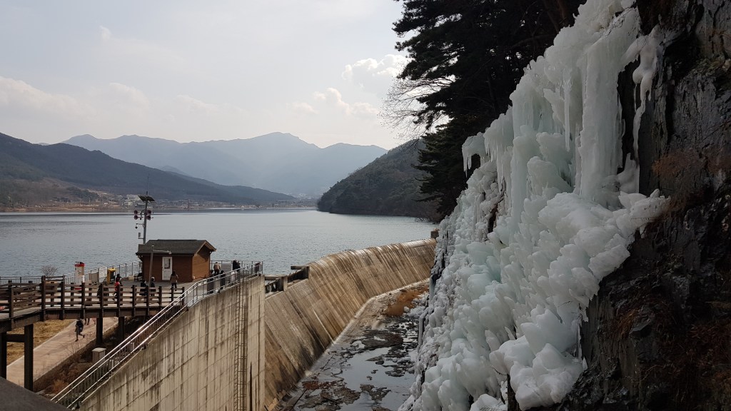 I’ve been to Songhae Park several times while living in Daegu, it makes for an excellent walk around the resevoir whatever the season! However I recently found out that Songhae Park now has a special ice wall feature during the winter seasons, and they also opened a mini cave you can walk through with several photo zones. Of course this meant going back for another visit to check these out! As winter is nearly over I would advise going asap if you want to check out the ice wall as I’m not sure how much longer it will last in the gradually warming weather. If you miss the wall don’t worry though, as Songhye is beautiful in the spring with fields of flowers so still worth the visit! Read on to see more about the ice wall and cave~