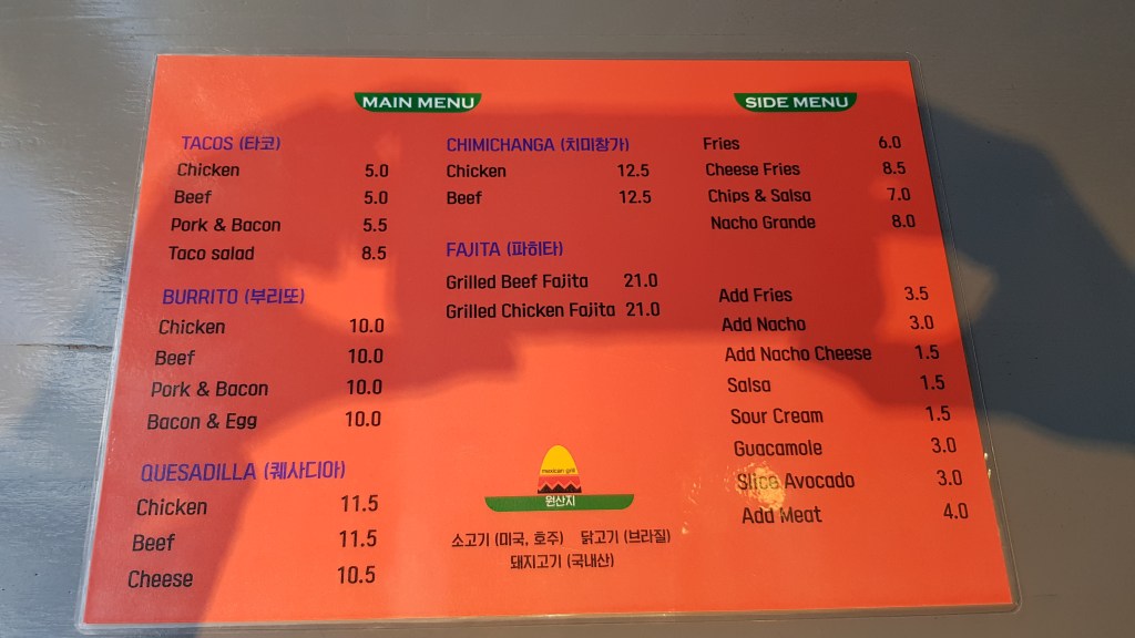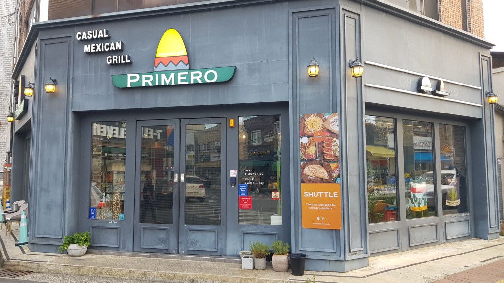 Despite living in Korea for several years, I’ve never really explored the area surrounding Camp Walker that much. However, at the end of last year some friends introduced me to Primero, a little Mexican bar and grill close to the base, and since then I’ve been a regular customer! The food is great, prices decent, and they have a fantastic drink selection to boot! Read on for more info and why you should make a journey over!