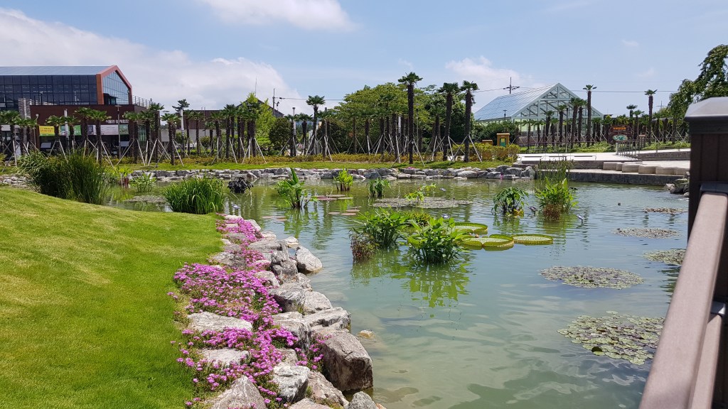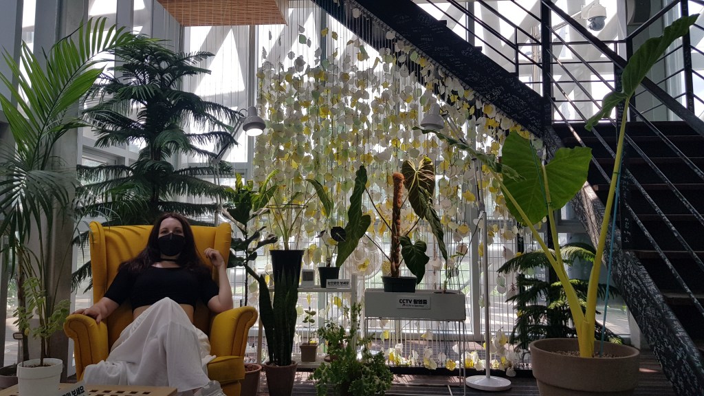 We also just enjoyed wandering around and looking at all the various plants, trees, and flowers they had. There’s also a nice waterfall, and a cave with fairy lights. All in all it took us around an hour to explore the whole dome. We both really enjoyed it and it was a great little stop off to start our trip. There’s also a shop nearby selling local produce, and a cute cafe. We stopped by for an ice americano then luckily Naver Maps showed a bus incoming so we headed back to the bus stop.