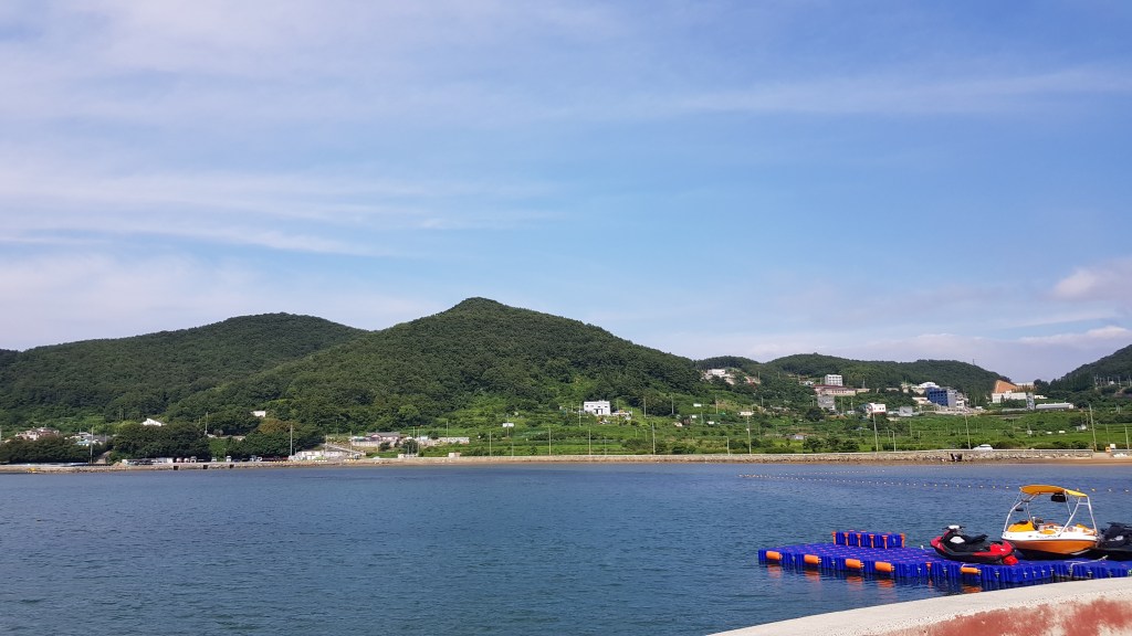 To get to Okpo would take about an hour, so we decided instead of going directly to have a little stop off at a beach we spotted on the map on the way there. The beach name was Sagok and you can find the Naver link here, Kakao here. Our bus didn’t stop right by the beach, but we got off at the nearest stop and walked about 20 mins down to the shore. The beach was pretty nice, and had little crabs burrowing everywhere! I love crabs so enjoyed this a bit too much. You could swim in the sea, and there was also a speed boat ride which we debated but didn’t end up doing. The shower rooms also had a little mart hidden in the side, so we got some ice cream and just chilled.