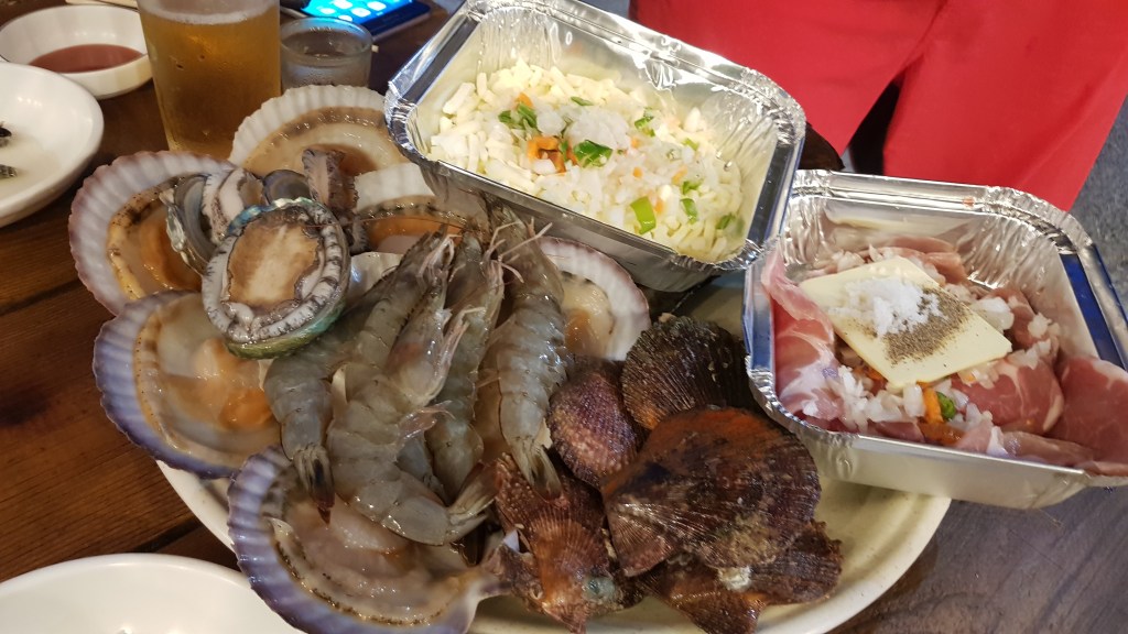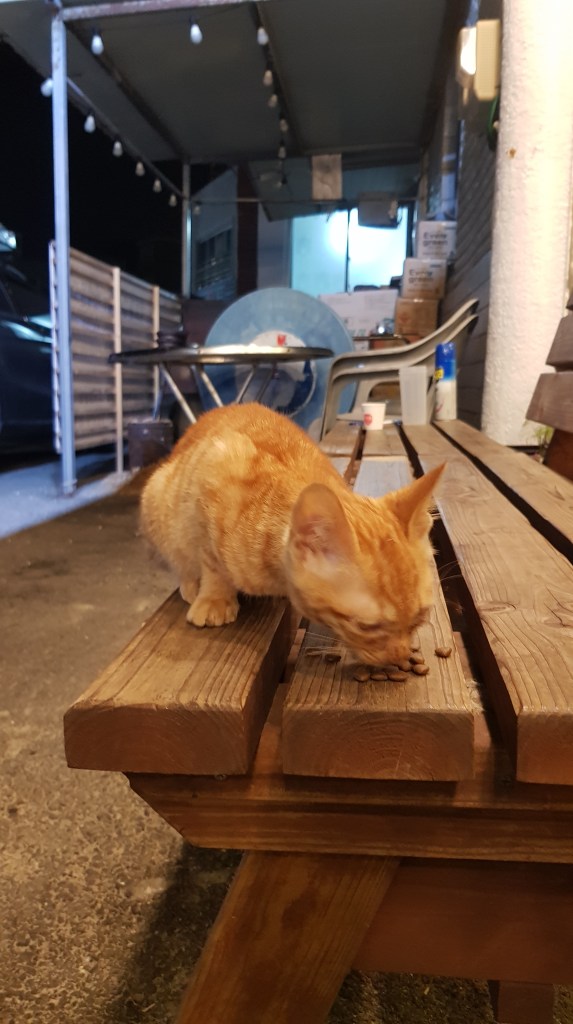 After we got settled in my bf’s lovely friend came to pick us up for a night out. Of course we wanted seafood as we were by the sea! So she took us out to a restaurant she knew. I’d had a couple of beers at the motel so forgot to get pics of the restaurant (whoops) but it was in a great location right on the seafront. The restaurant name is Last Shelter and you can find their Insta here. You could probably Kakao Taxi there for pretty cheap too. The restaurant had inside and outside seating, so we decided to sit outside to enjoy the fairy lights and the ocean which was just a stone’s throw away. We ordered a platter of shellfish and shrimp, and a bucket of beers and soju. The food was suuuuuper yummy, grilled shellfish is one of my faves. Also there were loads of kitties hanging around for scraps! I always carry a container of dry cat food with me so could satisfy the cats without giving them my fancy food lol. I am a cat mum of two so can’t resist feeding the strays.