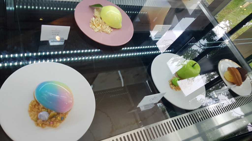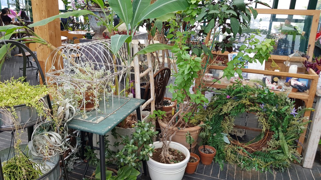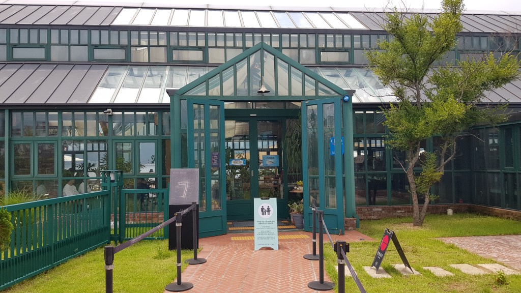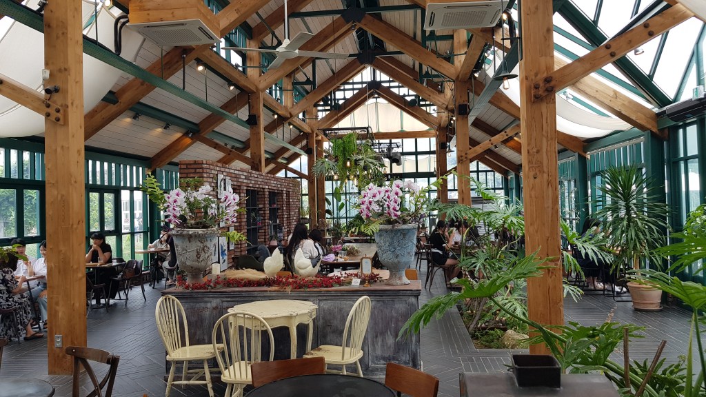 Next we decided to check out Oedo Nursery (Naver link, Kakao link), a famous dessert cafe in Gujora. My only regret visiting here is that I didn’t take more pictures! It is definitely one of the most beautiful cafes I’ve visited in Korea. The inside is covered in plants with a big airy roof and cute decorations everywhere. They also had a seaview patio with stunning vistas of the ocean and cute seating. As you leave you can also wander through their garden, where they have a private greenhouse that said you can hire it for parties. I would have taken more pics but the place was overloaded with people doing Insta shots so I just snapped a few and gave up haha! I was too tired to fight for a spot myself but regret it now. But before I finish talking about the cafe don’t forget the main event… the dessert!