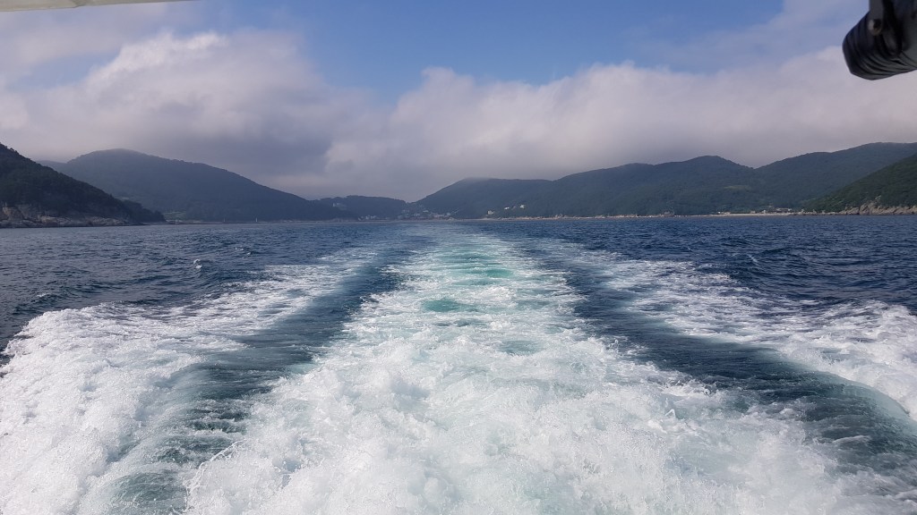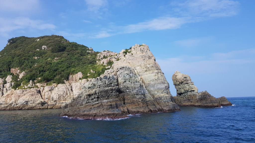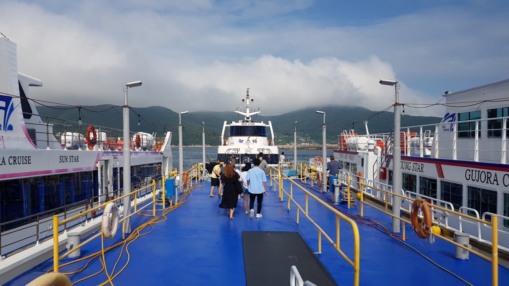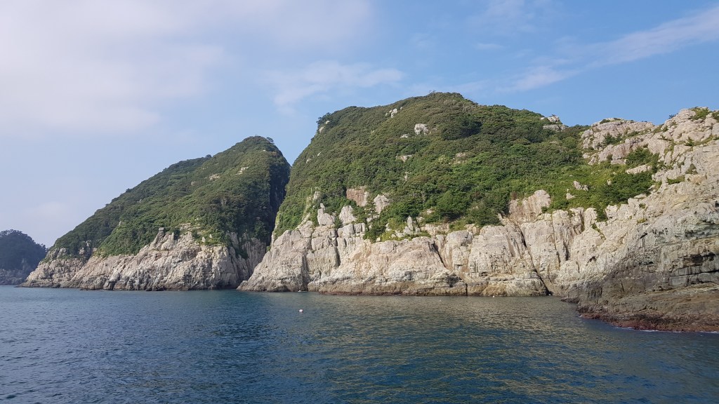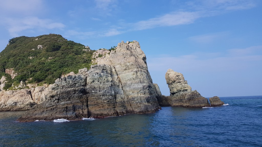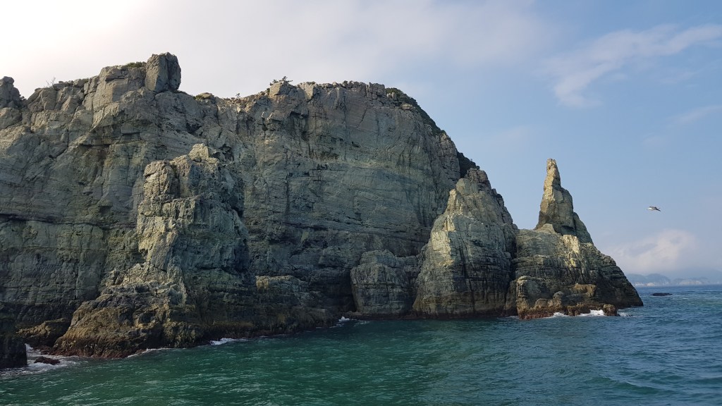 They will ask you to arrive 10 minutes before departure time, and this gives everyone time to get on the boat and got through the safety instructions (all in Korean but they had videos too). The boat was pretty big with ample seating, it had a roof area too that we were allowed to go up to several minutes after setting out. If, like me, you are prone to seasickness I would recommend getting some medicine in advance. They sell it on the boat for 1,000 a bottle but I got some at the pharmacy before hand for 500. While the boat ride wasn’t too rough there were odd moments that upset my stomach a bit! You can ask for 멀미약.