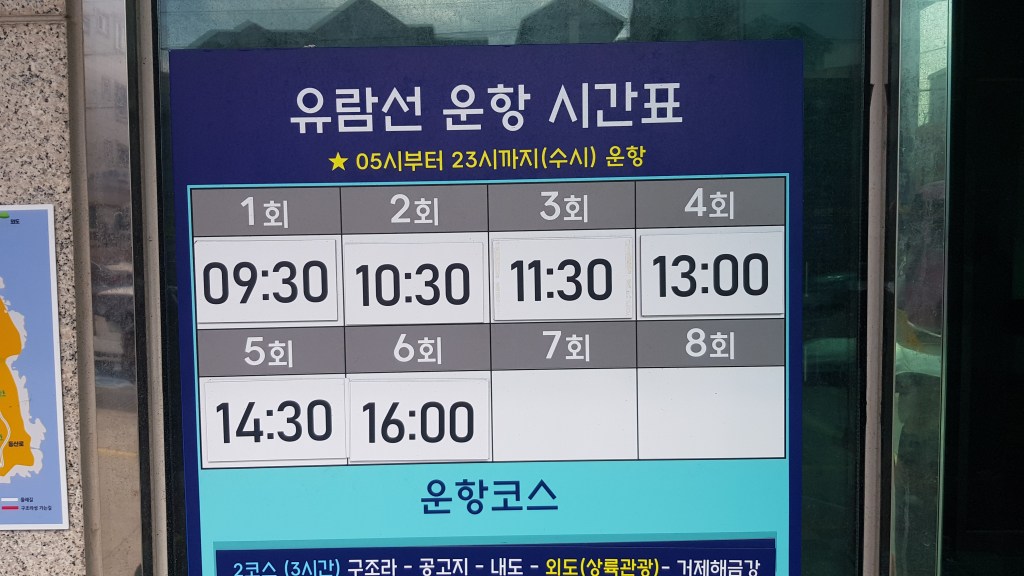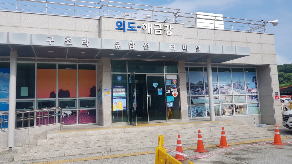 So we actually got up a bit later than anticipated (if you read my previous post then blame the wine haha), but our plan for the day was still to take the boat to Oedo. You can get the boat to Oedo from several different ports on Geoje, but we wanted to check out a famous cafe and the beach at Gujora as well. As they also have a boarding terminal for Oedo there we thought why not make a day of it?! To make up for the late start we booked a Kakao Taxi to the terminal, which cost around 13k and took about 20-25 minutes. The taxi dropped us off at the terminal and we stopped in to buy tickets first to make sure they didn’t sell out. Full ferry information is available further down the page.