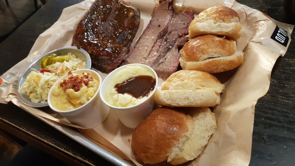 The second time we got the pork ribs and brisket, the brisket was an extra 3,000 but worth it because it was super yummy on the bread with some BBQ sauce. Would def order again. Both times I had the mash and gravy and mac and cheese as sides because they are both sooooo good. Like honestly I don’t think I would ever order any other sides because I could easily eat at least a tub of each to myself.