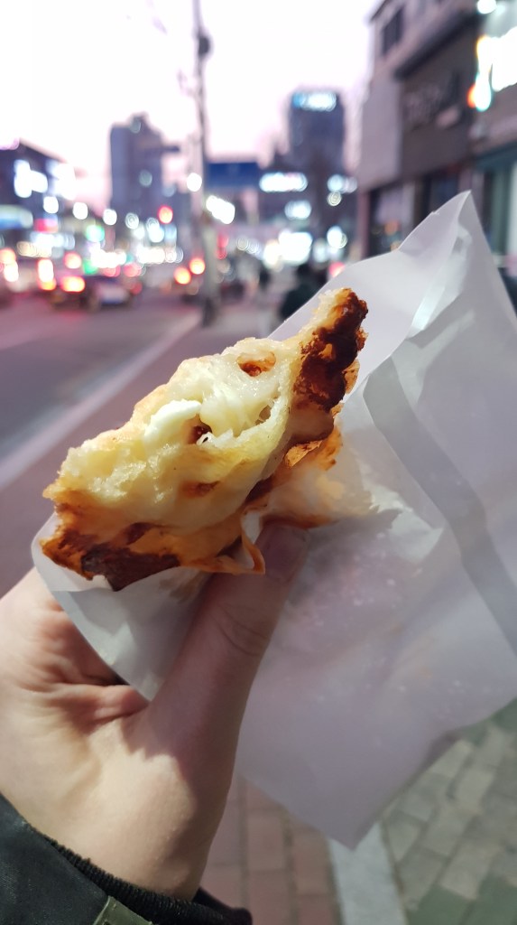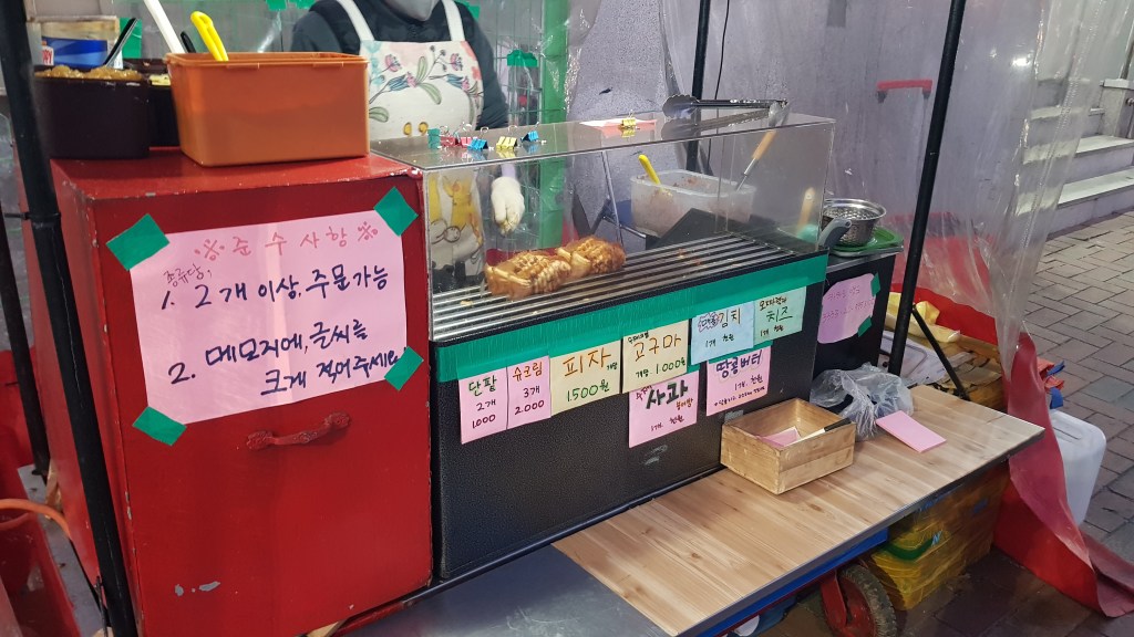 The cart is open daily 2pm to 10pm and is located outside the Daegu Bank a short walk from Hyeonchungno Exit 1. Prices vary from 1000 to 1500 per bread, bring cash or make a bank transfer. GET EM WHILE THEY’RE HOT!