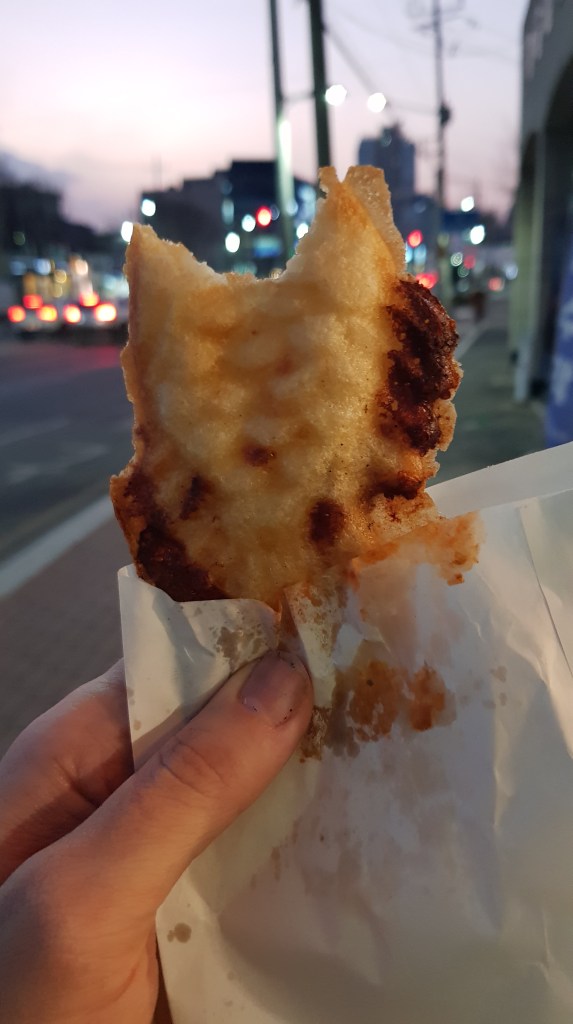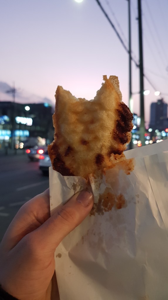 Anyone else noticed it’s bloody cold outside? Fortunately, there are some upsides to these chill Korean winters, mainly that it’s my favourite season for street fooooooooooooood. And one of the top contenders for my top sneaky street snack has got to be bungeo-ppang (the fish shaped breads with fillings). My only issue with this delicious treat is that I am not a huge fan of red bean paste, and that is the main filling for these tasty little snacks usually. Sometimes I get lucky and pass a store selling the custard cream ones and end up buying 10 of the little buggers as a treat but that doesn’t happen every day (sadly).