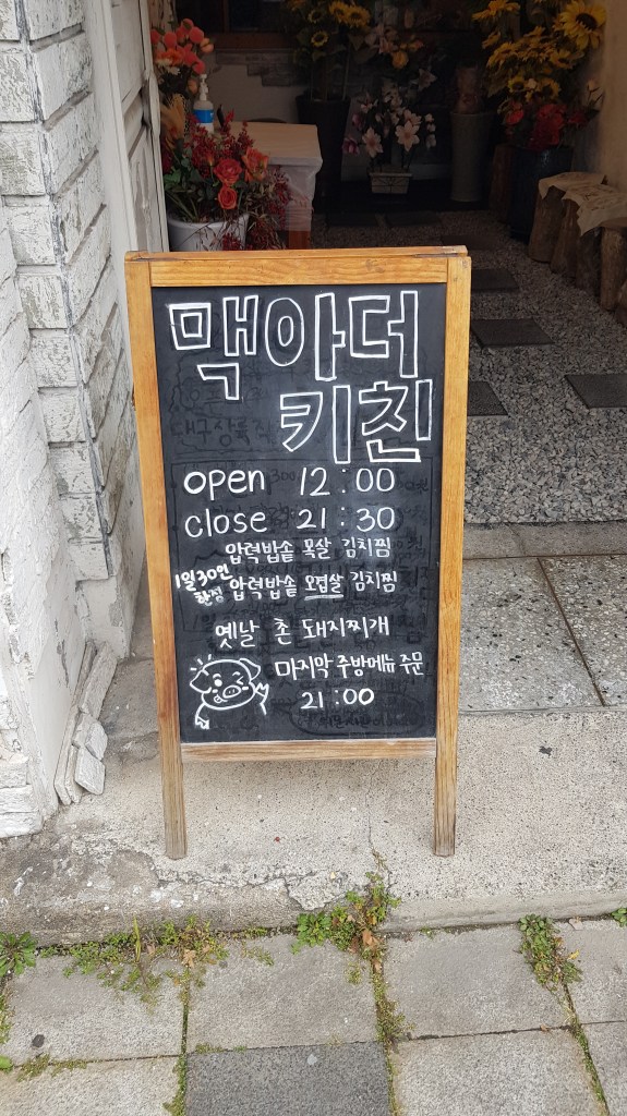 I was flicking through pics of places I’ve visited lately, and I realised that I’ve never shared one of my fave Korean spots on Dig In Daegu! Shocking! So today you are in for an absolute TREAT. I’ve been visiting this place for years and never been disappointed, so I’m excited to share MacArthur Kitchen with you today. Especially if you like kimchi you are gonna LOVE this place.