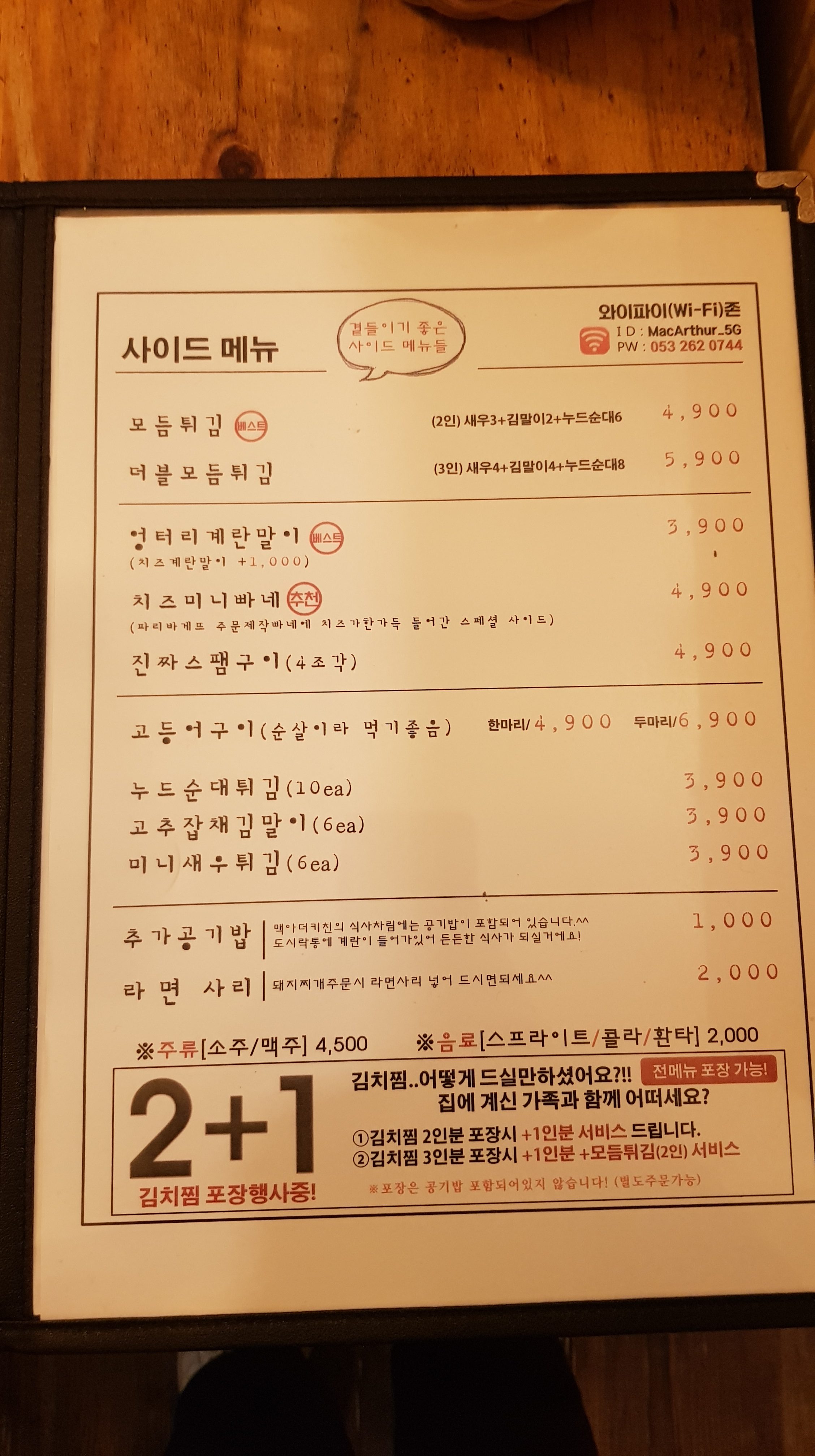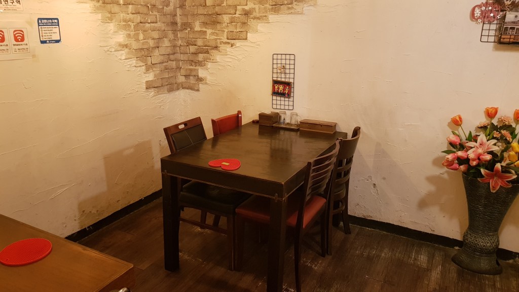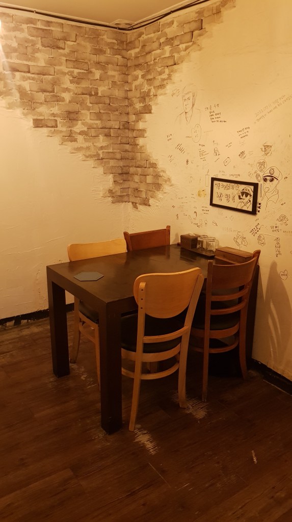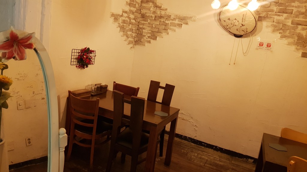Located in Myeongdeok, MacArthur kitchen is located between Namsan and Myeondeok Stations on the yellow (and red) line. It also has good bus access with many buses stopping around this area. Walk down from the main road and you will spot the restaurant on your left. Keep your eyes peeled because it’s easy to miss! Enter through the passage with the stone flooring and the door is on your left.