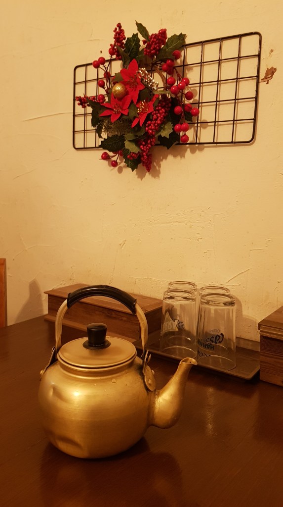 While they do have ample seating inside on busy days you may have to wait for a table, but trust me it’s worth it! So either grab a seat if one is free or write your name and number on the chart near the door. The inside has a cute rustic feel like a little country cottage, CUTE. I especially love the kettles they use for pouring water!