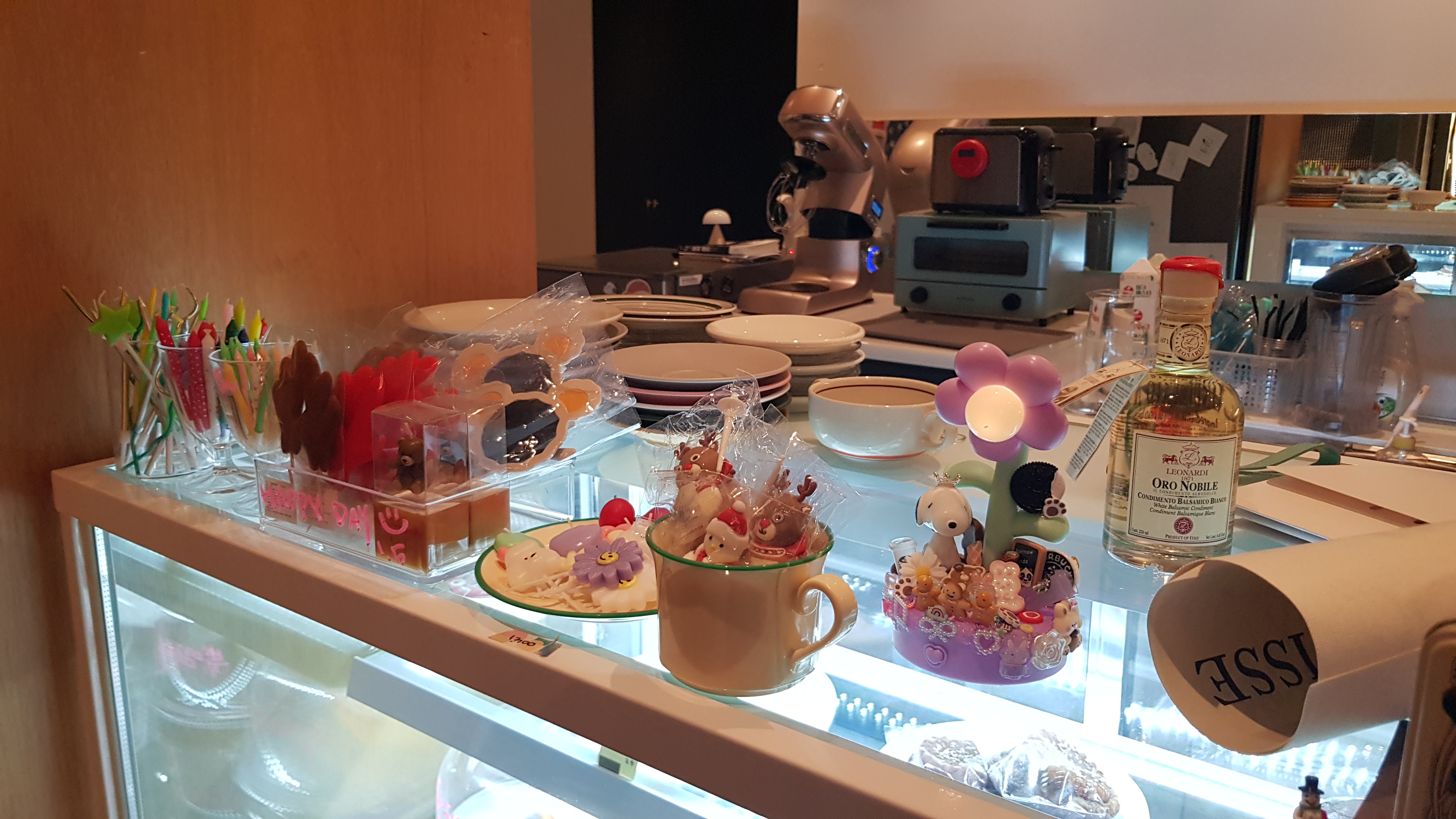 At the front there is a big fridge where you can see all the cakes and confectionaries on offer. I chose a slice of the yellow cheese cake. The drinks menu offers a range of coffees, teas, smoothies, ades, and seasonal drinks. As I said, I had had a ROUGH day at work, but then I spotted Irish coffee on the menu… The owner said it contained whisky so I thought why the heck not haha ^^; I found a seat and waited for her to prepare my order.